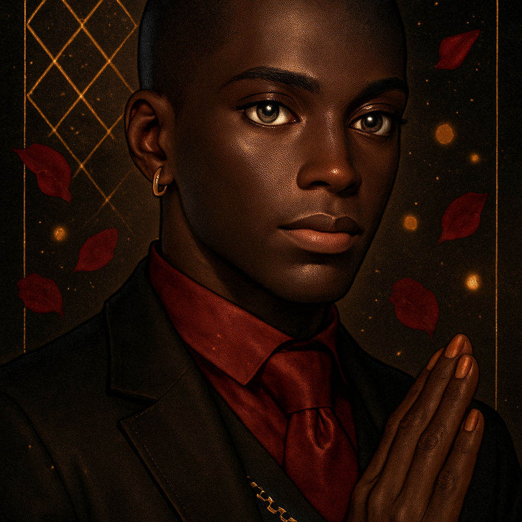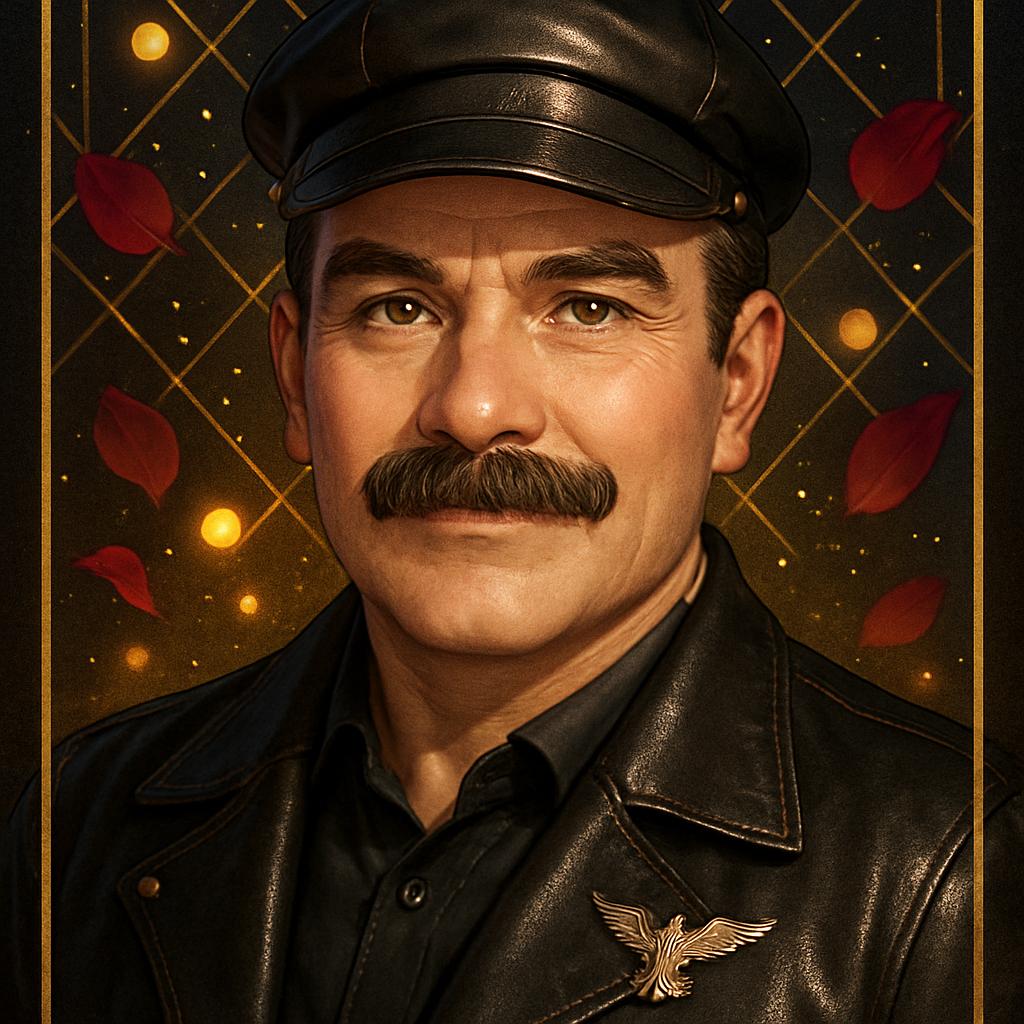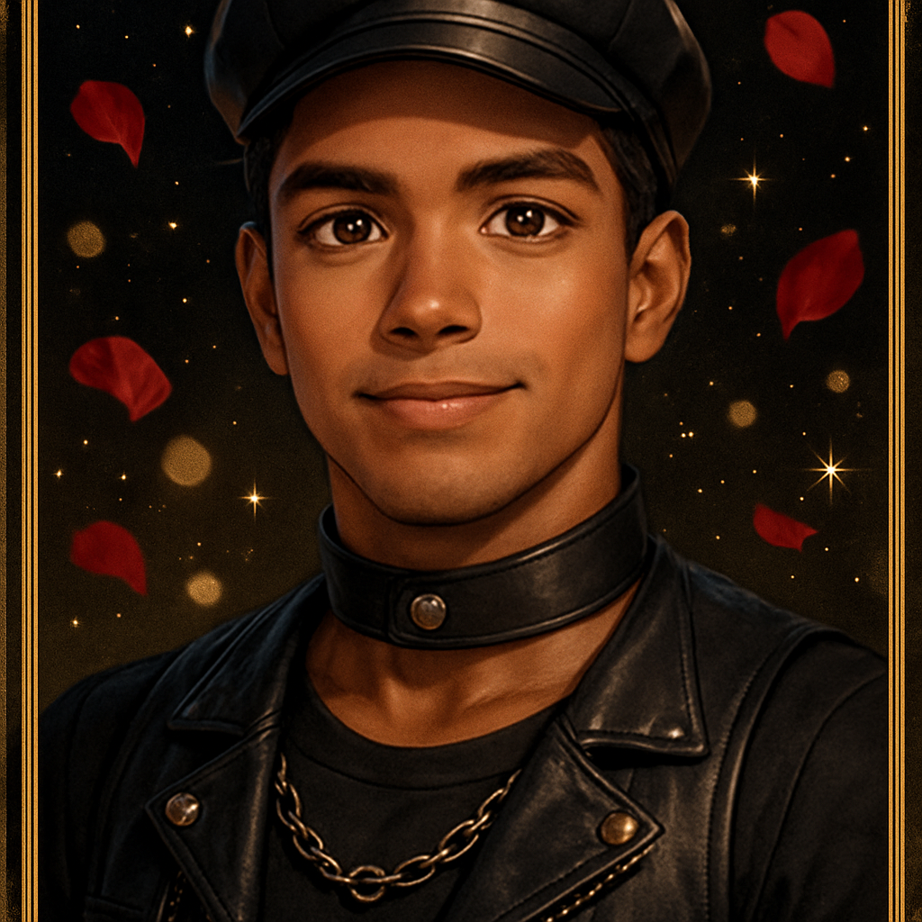 The leather boy does not simply follow; they grow into something through following.